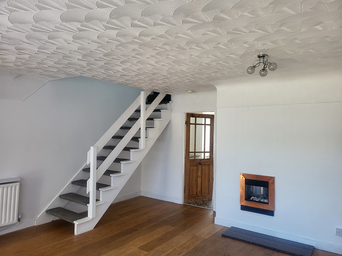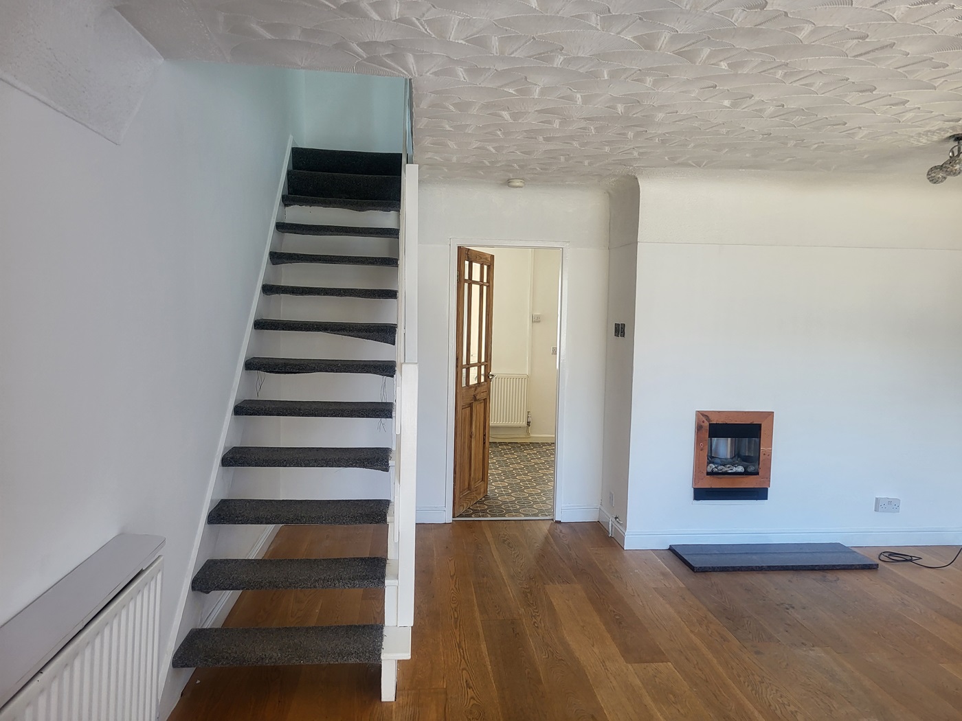 With ample living space to the ground floor which includes, a living room with access trough to the kitchen, the kitchen is a large area which also has the space for a dining table and additional room at the back that overlooks the garden at the rear of the property accessing through french doors. Upstairs there are three bedrooms, 2 double bedrooms and 1 single bedroom and a modern bathroom fitted with a walk in shower.