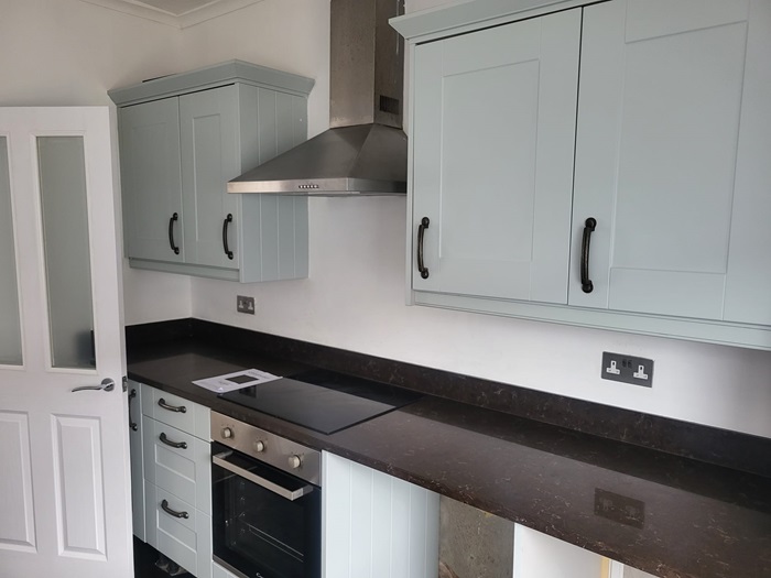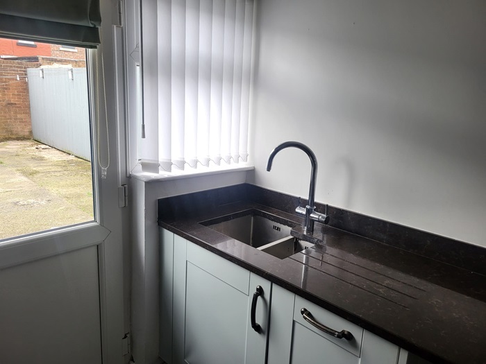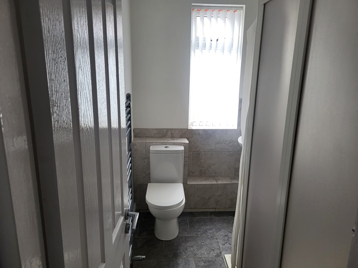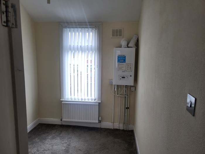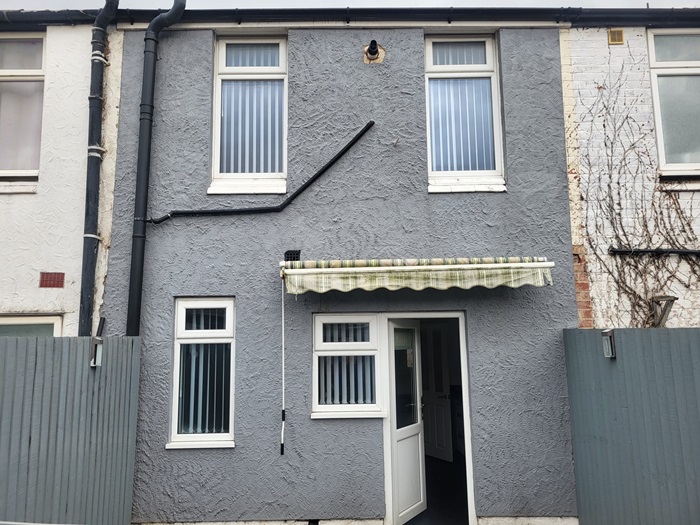 The property comprises of entrance hall, living room with feature fireplace and grey carpet , modern kitchen with a range of wall and base units, cooker, new ceramic hob and dishwasher, the bathroom is located downstairs and is fitted with a large shower cubicle. To the first floor are 3 bedrooms, the double front bedroom is fitted with wardrobes. The property also has a front small patio area and to the rear is an enclosed large yard with a shed.