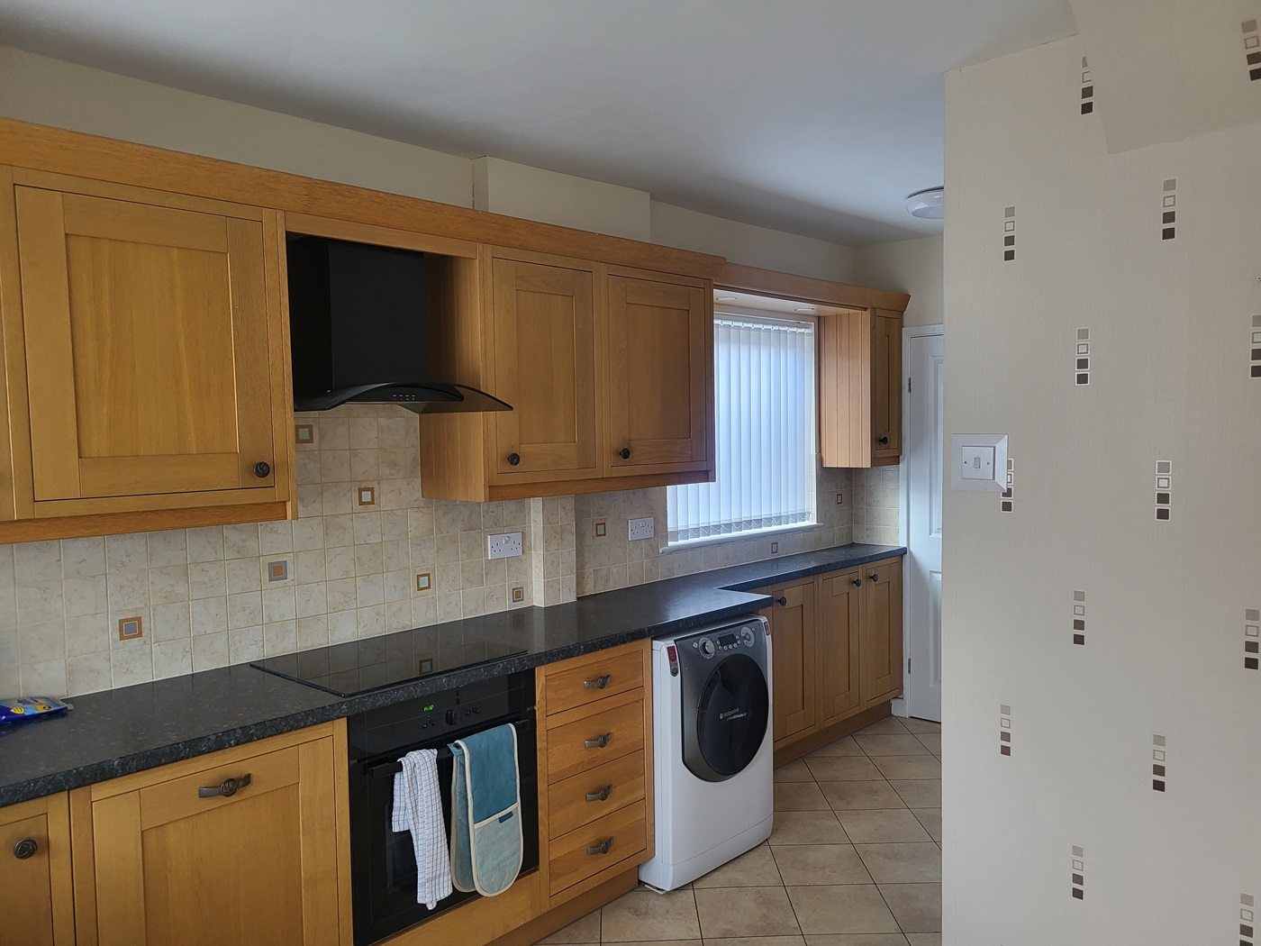 Downstairs is an entrance hall, large lounge with cream carpet and gas fire also a large kitchen with ceramic hob, electric oven and Extractor hood and storage cupboard. Upstairs are 2 double bedrooms, one has fitted wardrobes and there is 1 single bedroom and a separate W/C and bathroom which has a walk in shower. NO PETS WILL CURRENTLY BE CONSIDERED