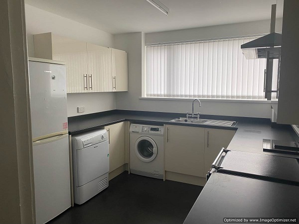 The kitchen is bright, modern and features a modern fitted kitchen, gas cooker, fridge freezer, washing machine and tumble dryer. Leading from the hall is a bright lounge with laminate floor, feature fireplace with electric fire and french doors leading into the back garden.